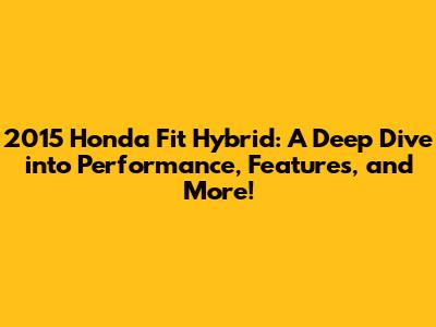 The electric motor provides instant torque, which improves acceleration and makes the car more responsive to driver inputs. The hybrid system also contributes to a smoother driving experience, as the transitions between the gasoline engine and electric motor are typically seamless. Honda's hybrid technology is known for its reliability and efficiency. The system is designed to provide years of trouble-free operation, ensuring that drivers can enjoy the benefits of hybrid technology without any concerns. The 2015 Honda Fit Hybrid is a testament to Honda's commitment to innovation and environmental responsibility. It offers a practical and fuel-efficient driving experience that caters to the needs of modern drivers.