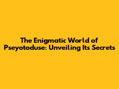 The Enigmatic World of Pseyotoduse: Unveiling Its Secrets