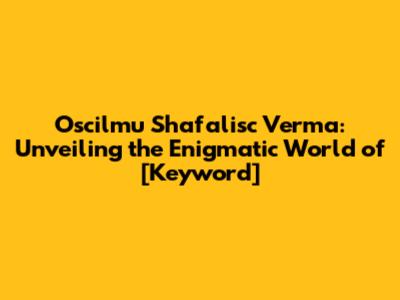 Oscilmu Shafalisc Verma: Unveiling [Keyword] Secrets