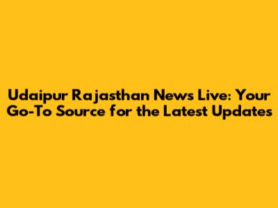 Udaipur News Live: Latest Updates From Rajasthan