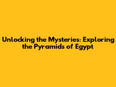 Unlocking The Mysteries: Exploring The Pyramids Of Egypt